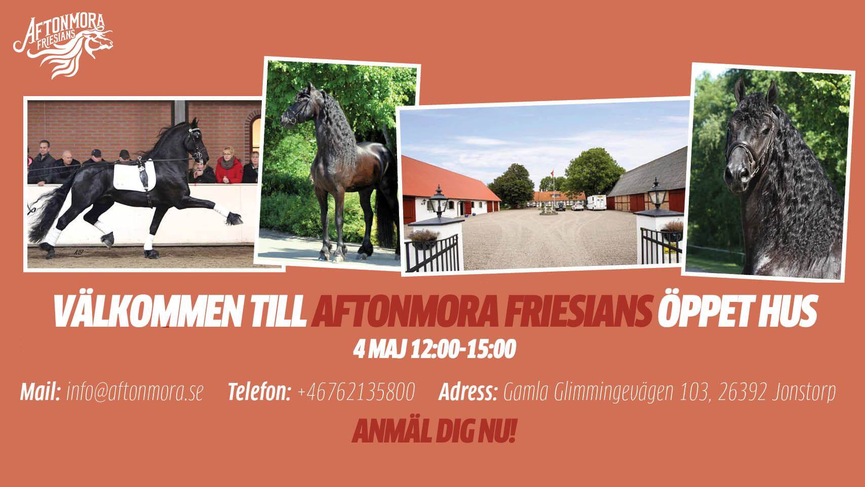 Kom och lär er mer om frieserhästar när Aftonmora Friesians har öppet hus!
